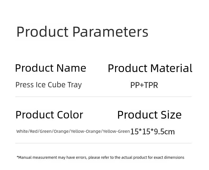 Pressing design: Gently press to easily remove ice cubes, saving effort and convenience, avoiding the problem of ice cubes getting stuck or difficult to remove.