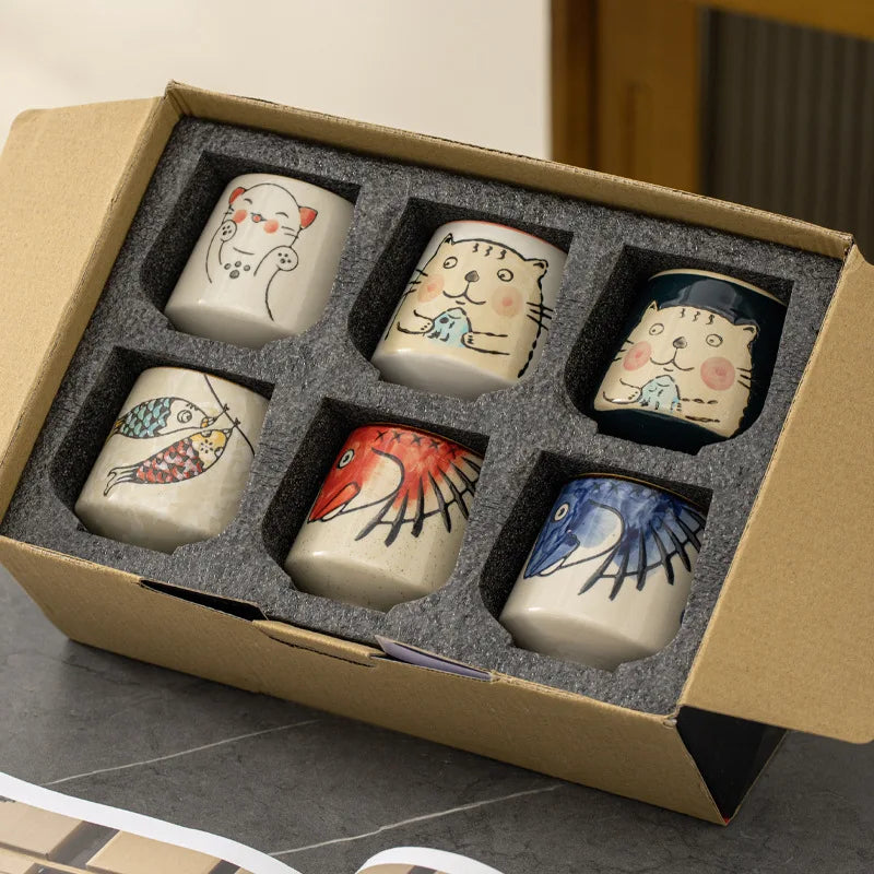 Japanese Tea Cups Cute Cartoon Cat Ceramica Cup Coffee Milk Matcha Mug Drinkware Sushi Restaurant Sake Teacups Household Kitchen